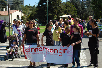 What a fine day we had, and how high were all the spirits! I loved wearing the purple "Votes For Women" sash and feeling like I was marching in the footsteps of my forebears (unfortunately, we were not able to recreate the exact path of the 1908 parade in Oakland, but close enough!)