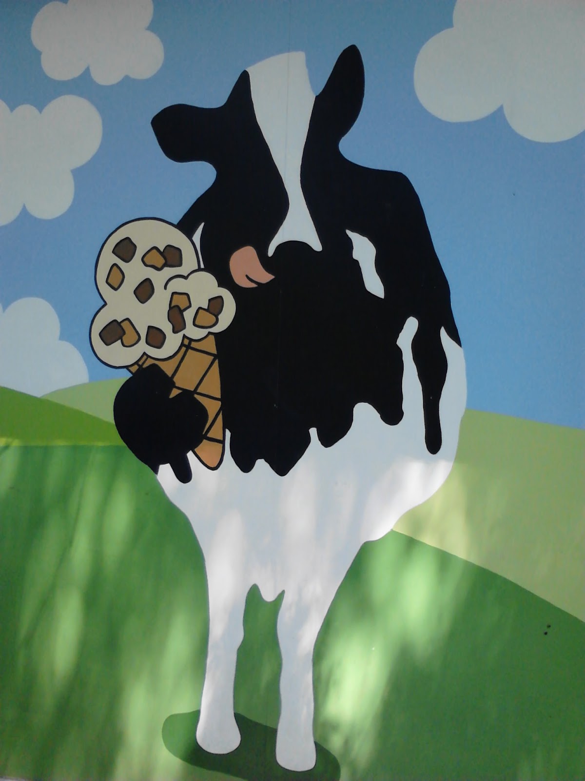 The Vermont artist whose work graces the Ben and Jerry brand is Woody Jackson. I'm not sure if he made this particular image at the factory of a cow eating ice cream presumably made from her own effluvia, but his style is instantly recognizable.