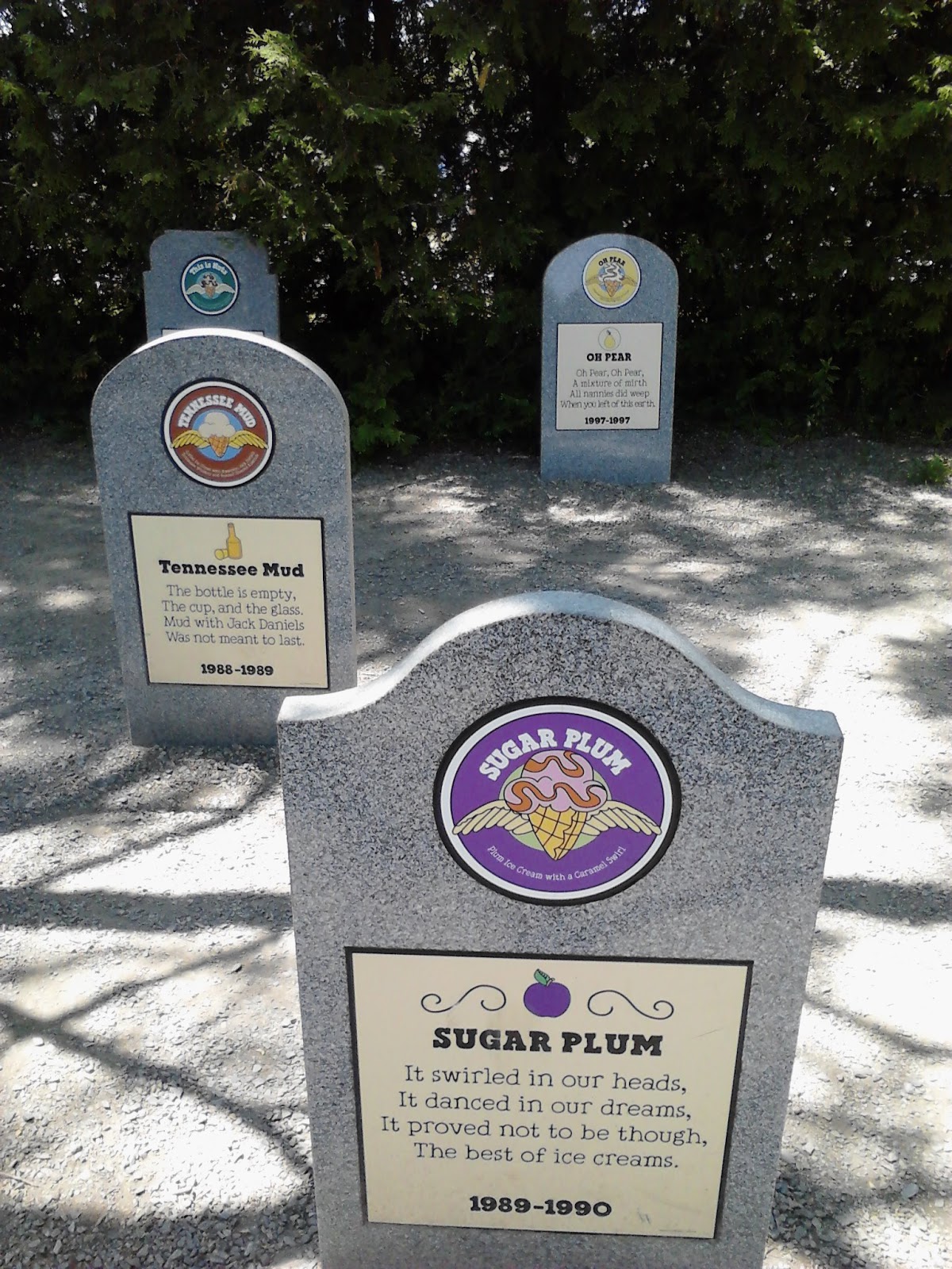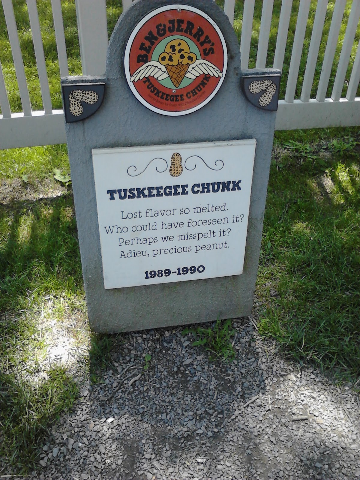 For instance, I remember Tuskeegee Chunk from when I scooped. (Actually, looking at the date on this tombstone, I can determine when I worked at Ben and Jerry's: the summer of 1989). The tombstones are real granite and each has a clever rhyme.