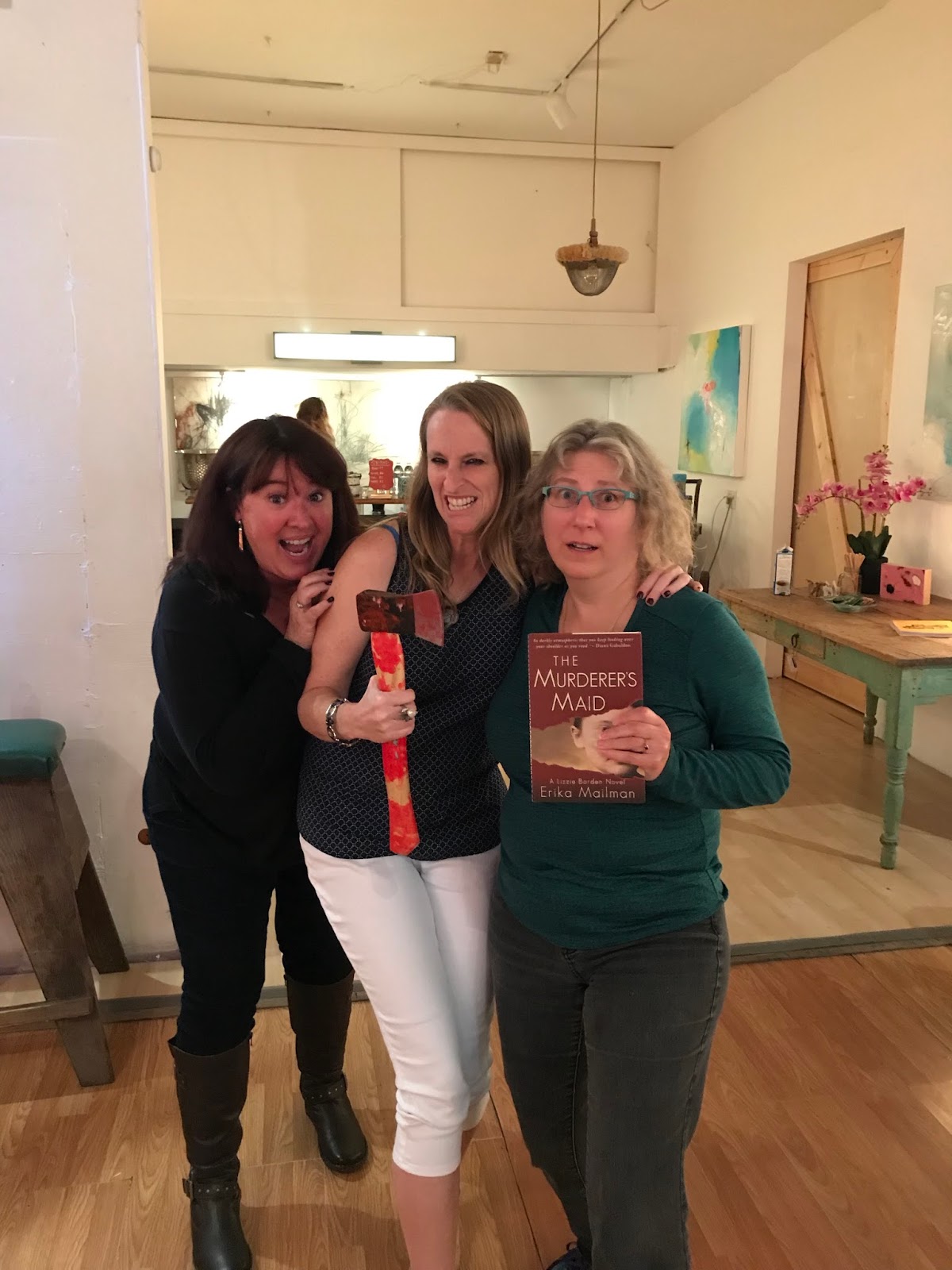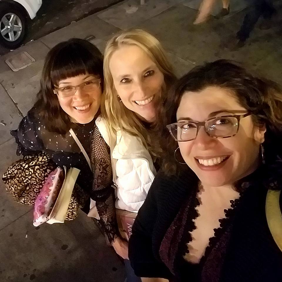 Author Sarah Kuhn (who gave a great reading!), me, literary patroness Kat
