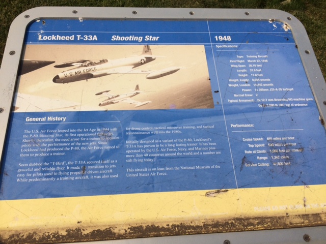 The T33: This is parked in front of the space museum. (Let me pause and say this is an incredible facility with two huge hangars, one for air and one for space. I'll blog later about the space side).