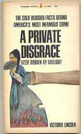 Despite this, I enjoyed one of the iconic nonfiction books about the Lizzie Borden case, Victoria Lincoln's A Private Disgrace, which won an Edgar award in 1967. The author was born in Fall River, Massachusetts, in 1904, twelve years after the murders took place in 1892. She knew the elderly Lizzie Borden as a several-streets-over neighbor but admits she had initially remembered her as living right next door.