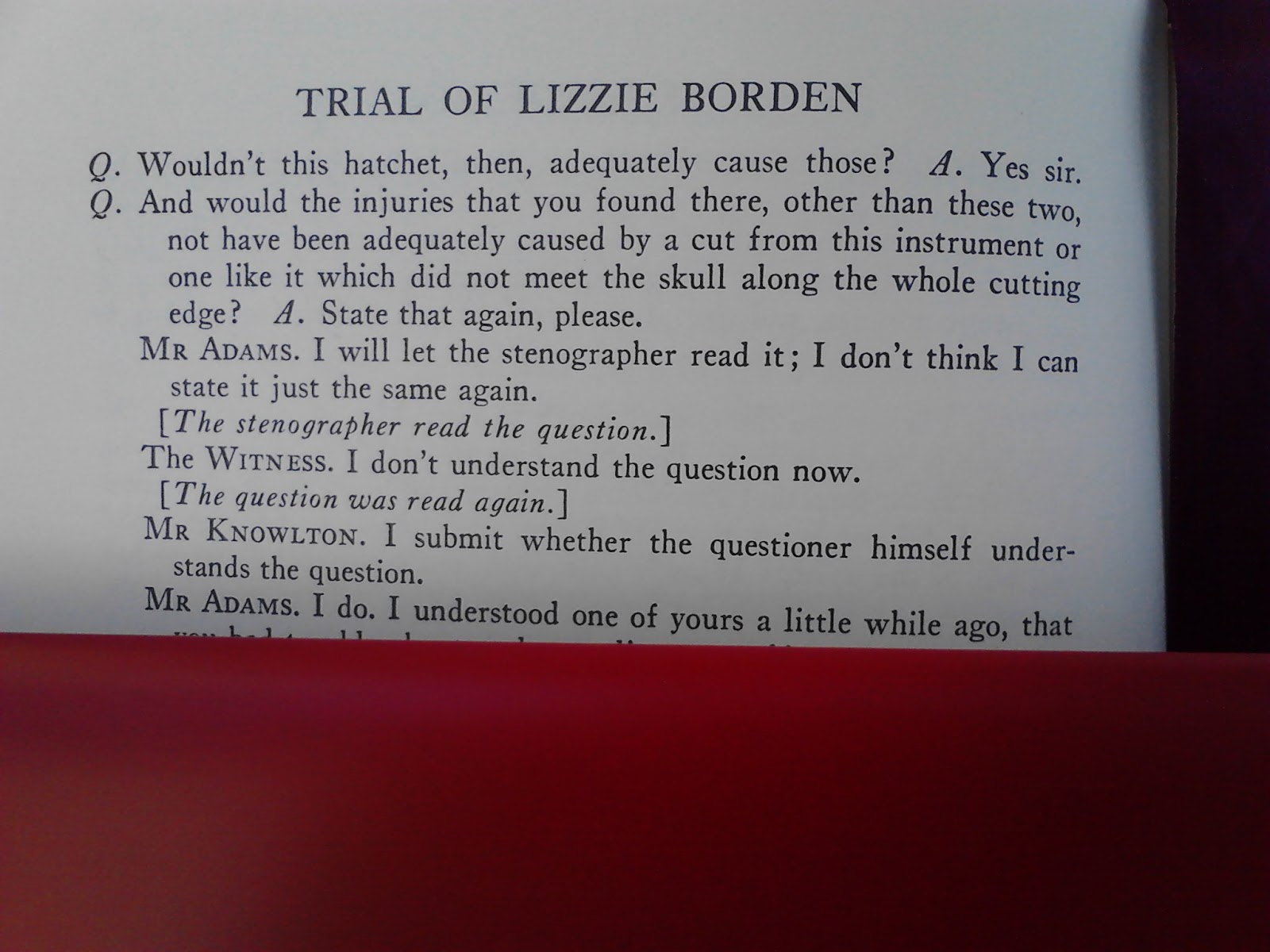Note: All trial quotations in this post are from Trial of Lizzie Borden by Edmund Pearson, 1937 (1989 Notable Trials reprint).