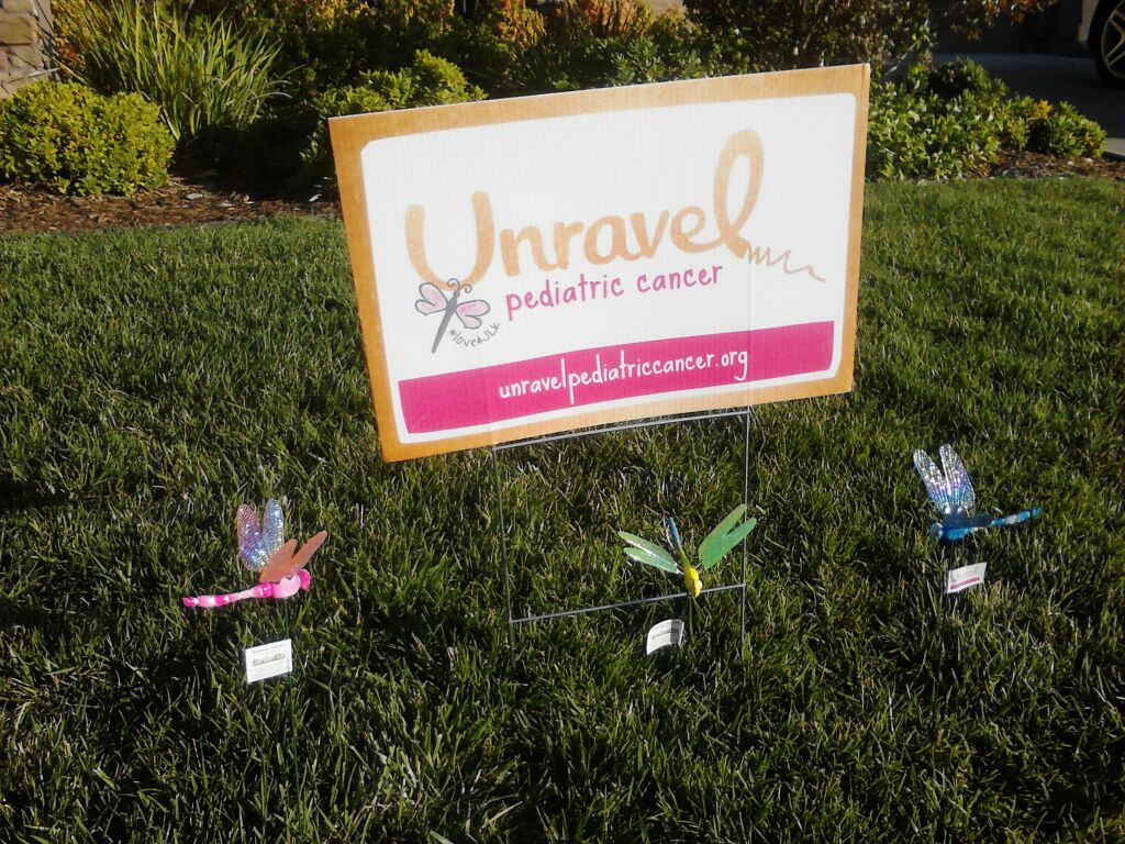 Anyone who's read my blog over the years knows about Jennifer L. Kranz, the sweet, cute six year old who died of DIPG a mere 3.5 months after diagnosis. Her parents created the groundswell Fluttering movement, in which people purchase a Fluttering kit of lawn-ornament dragonflies and commit to moving the dragonflies yard to yard throughout September, with official Unravel paperwork that requests a donation to the nonprofit foundation in return for selecting where the dragonflies go next. Today there is a flash sale of the Fluttering kits. Fluttering is a good thing to do with your own kids--talk to them about how to use our bodies to help others, that the daily task of moving the dragonflies is raising money to help researchers figure out kids' cancer. You can Flutter in the name of someone you know who is fighting now or in memory of someone. It's a meaningful, intense, beautiful thing to do. Purchase your Fluttering kit here.