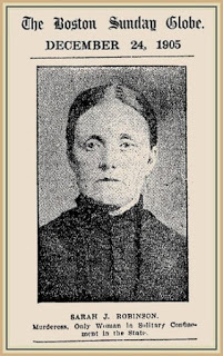 Getting back to the idea of that all-male jury in Fall River, Massachusetts. The name of Sarah Jane Robinson was evoked by the prosecution as an example of a woman quite capable of murder, thank you very much. Between 1881 and 1885 (the Borden murders were in 1892), and in nearby Cambridge, Massachusetts, Robinson murdered eight people. The difference to this jury, however, was that she did it in a womanly way: she used arsenic.
