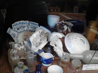 Exhibit of items taken from the privy excavationNo surprise, then, that he wrote a poem based on the true 1840 story of a young woman riding to a New Year's Eve ball in an open sleigh, who didn't want to cover her beautiful dress. At first Charlotte complains to her husband about the cold, then later she talks of growing warmer. After ten miles of shivering, she died of hypothermia.