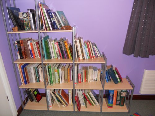 This is my last Room of One's Own post. Hopefully by now you're all feeling at home in my writing room. The photos are of my Stonewylde reference books - such a huge luxury to have them all together like this. I have hundreds and hundreds of books and previously, they were scattered all over the house and in the attic. Since moving to this house, I've been able to sort them out. Many are still in boxes in the garage and Narnia (more about Narnia in a minute) as we've run out of bookshelves, but I've pulled out the most vital ones that I know I may need to consult when finishing the Stonewylde series. This funny bookshelf unit was an old e-bay purchase and is meant to fit under the stairs. I used it at the old house to store the Stonewylde T-shirts and greetings cards, stationary etc but it was never very good for that. Now it's absolutely perfect for my books and keeping them in categories. I have one area just for information on wild flowers and fungi, for instance, and another for books on herbalism, and so on. It was such fun categorising them all and re-discovering some old favourites. When I've finished writing the series I shall treat myself to some serious reading whilst I think about what comes after Stonewylde.