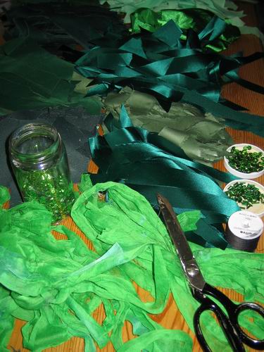 Sewing tatters and sequins onto Mr B's Green Man cloakWhat an incredibly hectic month it's been since my last post. Suddenly this year is almost into May already - seems only a couple of weeks ago we were snowed in and queuing for milk at the Co-op! This will only be a brief blog as I'm off to the Elf Fantasy Fair in the Netherlands in the morning. We're leaving extra...