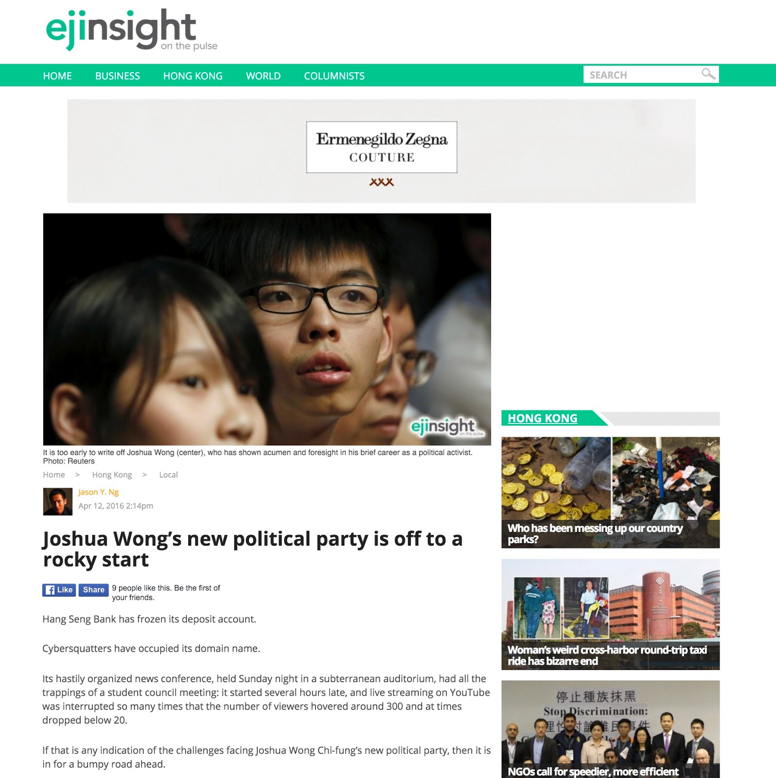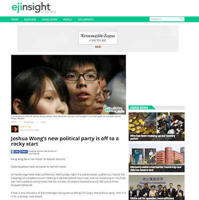 This article appears on EJInsight under the title "Joshua Wong’s new political party is off to a rocky start"