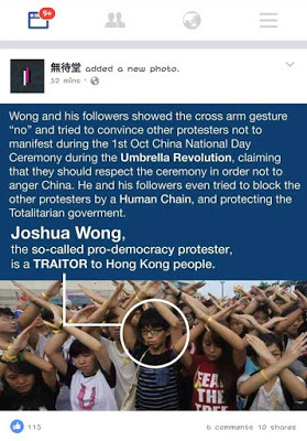 Yesterday's heroBut what a difference a year makes. Today, he is the prime target of what amounts to Cyber-bullying. Thousands of blistering comments plaster across Wong’s Facebook page and that of his newly-minted political party Demosistö (香港眾志). The trolling – the Internet slang for online harassment – is so relentless, and the name-calling is so vicious and disruptive, that you easily forget what the original post is about.
