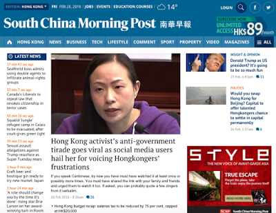 This article appears on SCMP.com under the title "Hong Kong activist's anti-government tirade goes viral as social media users hail her for voicing Hong Kongers' frustrations."