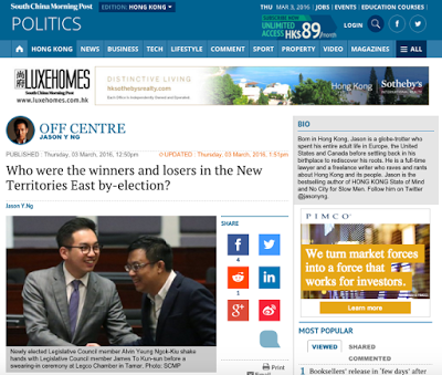 This article appears on SCMP.com under the title "Who were the winners and losers in the New Territories East by-election?"