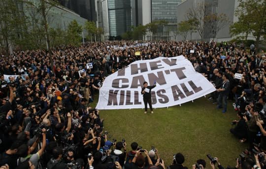 Yesterday’s rally began at the government complex in Tamar and ended at the nearby police headquarters. There were thousands of participants, all dressed in black, many of them reporters and journalism students. They carried placards bearing the words “They can’t kill us all,” a phrase borrowed from the infamous Kent State University shootings in 1970 in one of the darkest chapters in 20thCentury American history. The choice of words is apt, for last Wednesday may well be one of the darkest days in post-Handover Hong Kong. And so there I was, once again in my black T-shirt, chanting slogans and praying for Lau’s recovery, all the while looking at a city that suddenly felt a bit foreign to me.