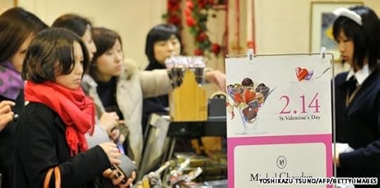 It's big business in JapanIn Hong Kong where everything is measured in dollars and cents, lovers take Valentine’s Day celebrations to a whole new level. The clock has barely struck 9:00 AM when the first flower delivery arrives in the office at the third cubicle in the first row – two dozen long stem roses from Jacqueline’s doting husband, one for each year of marriage. Then one delivery after another, expensive bouquets go to Mary, Susie, Cindy and Queenie, each one bigger and more impressive than the last. The intra-office popularity contest continues throughout the morning. The winner, crowned the Mrs. with the Mostest, will get a day of bragging rights in the department. The losers – ladies who haven’t received anything by lunch time – will keep their heads down for the rest of the day and make excuses for their negligent husbands or imaginary boyfriends. That explains why a large number of men are said to be “on a business trip” every 14 February.