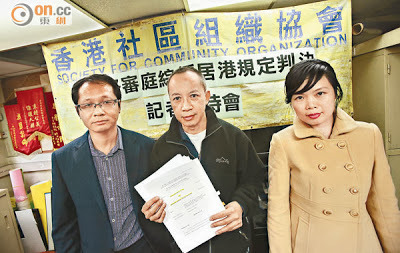 The few good men who helped KongThe lawsuit against the government was filed by Yunming Kong (孔允明), a 56-year-old Mainland immigrant whose Hong Kong husband died the day after she arrived in the city. Soon thereafter, the Housing Authority repossessed her late husband’s public housing apartment. Homeless and jobless, Kong applied for CSSA but her application was denied because she failed the residency test.