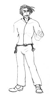 But wow! It takes me foooorrrreevvvverrrrrr to cartoon! I'm not bad at it, but I sure take a while. Part of the problem is I am a compulsive perfectionist. Another part of the problem is I'm not cartooning as much as I am drawing - big difference is that in cartooning "less is more" rules every line and stroke whereas in drawing "devil's in the details" can make or break your art. Anyway, I might have to do some more "stress marks" on his shirt but I'm going to keep it simple, like this, for the sake of expediting this cover art.
