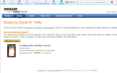 Yes, again, I just created this account yesterday. Why hadn't I done any of this before? Because I had created everything for "Sarah, The Webbiegrrl Writer" and apparently, Shelfari will not let me use that to be "Sarah R. Yoffa" as well. This is a great example "in action" of what I warned of in this week's Monday Marketing blog: be very careful what name you choose and how you use it. One little change can make you a whole new Author to the publishing world!