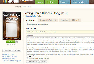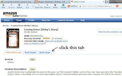 As I said, you must already have an Amazon Author Central account in order to setup any of your Book Extras on Shelfari. You have to log into Author Central first and get to your Book Extras through Author Central. For some weird reason, whenever I go directly to the Shelfari site and just log in and go to my book page, the changes don't propagate to the book's page on Amazon.