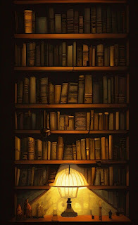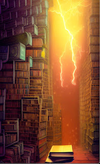 The rows of books grew misty,nebulous with threats of unseen attacks, filled with low growls of hunger aboutto be appeased.