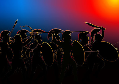 Her head abruptly cocked, her luxuriousraven hair slipping out a bit from her Spartan helmet. “I wonder ….”