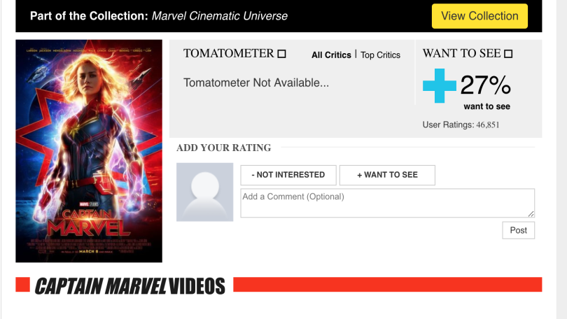 Hours later Rotten Tomatoes removed the ability for viewers to say they were not interested in seeing the movie ...