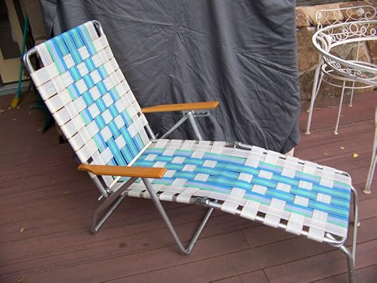 An old fashioned beach chair, the kind with really creaky joints that looked like squashed foil.