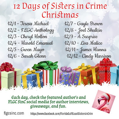 Over the first 12 days of December, one member of the Florida Gulf Coast Sisters in Crime will be featured on my blog each day, as well as on the chapter's Facebook page. Come back here each day to see who's featured!