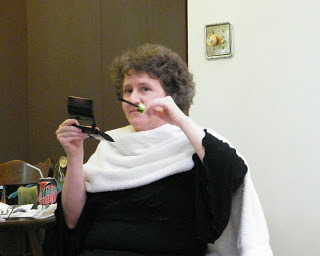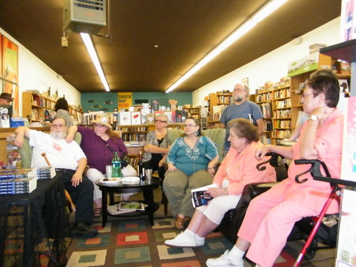 The Morris Book Shop had to put out extra chairs.The assistance I got in preparing for the party, which was almost as detailed as the prep for my photo shoot. My entourage was smaller this time, but multitalented. Christy applied the makeup, but began giving me lessons on how to put it on myself. I am proud that I did not whimper this time.
