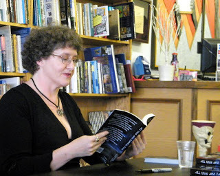 What is this 'mascara' you speak of? Wardrobe assistance: My sister-in-law, Deanna, bought me a bat necklace loaned me a dress that puts the 'ho' in horror. It looked great but I had to wear a push-up bra and a girdle to get the best effect. I now know why feminism was invented: the ladies of Seneca Falls wanted to breathe!The friend who ordered my book in advance and brought it in for my signature, already dog-eared. Very flattering.The stranger who showed up and was mistaken for the husband of a long-term friend. To be fair, though, it's been 15 years since I last saw the husband, whom I remember as 'the guy who wore the Spock ears and the shirt with the dragons f---ing'. He took my mistake in good humor, which is not surprising, given his blog. The family and friends who shared the day with me, especially the ones who drove in from Ohio, Louisville, and Eastern Kentucky.