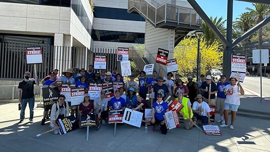 About 40 or so creators (some WGA members, some not) joined the proceedings at one of the gates outside of NBCUniversal on Lankershim Boulevard, with writers such as Eisner winner Pornsak Pichetshote (The Good Asian), Marc Bernardin (Adora and the Distance, Picard), Jeremy Adams (Green Lantern), David Avallone (Elvira), Emmy winners Shawna and Julie Benson (Batgirls and the Birds of Prey), and Lucifer showrunner Joe Henderson (Skyward). Rantz Hoseley, the Eisner-winning editor-in-chief of Z2 comics and independent filmmaker, organized the gathering.