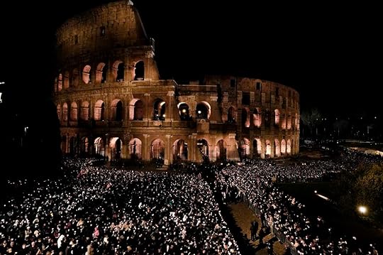 The Colosseum appointment is a highlight of Holy Week ceremonies. At this year’s procession, in which a tall, slim, lightweight cross was carried by faithful, some 20,000 people turned out, holding lighted candles in the darkness outside the arena. When the procession ended, and a cardinal, instead of the pope, gave a blessing, a shout of “Long live the pope!” rose from the crowd.