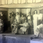 “Dinner is served,” a five-course dinner commencing with iced soup, to coffee and petit fours, during which the accordions are replaced by a Gypsy Orchestra, the leader serenading the ladies on his violin. Then the Cabaret dance Orchestra, immaculate in white monkey jackets with blue lapels, bow ties and cummerbunds, play. The guests dance, the wine flows freely, a beautiful iced cake is raffled nightly and each night £35 or so goes to the Y.M.C.A.