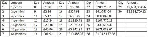 If you had to choose, would you prefer a million pounds or a penny that doubles in value every day for 30 days?