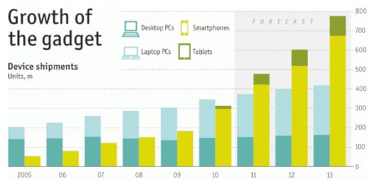 Oh dear: I cringed while writing the last half of that previous sentence! However I'm not the only one wedded to my gadgets. According to The Economist, sales of connected devices – specifically smartphones – will reach nearly 700 million by 2013.