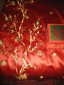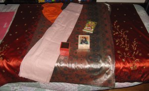 Yep, that’s a sari (and assorted souvenirs). I’m doing the close-up of the embroidery especially for Prue – made me think of her Adelina! (Which reminds me I still have to read her Lalita’s story… where’s my Kindle again? I had paper books of the first two Eirie books, but now it’s all e-books, LOL)