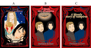 Now, you reader of this blog, even if you don't read my novels, please help me again in choosing a cover for the next release. Cover A is the original illustration for that story, dated 1997 or so (for which you can find the "manga" version on Barb&Masayo Stories), but it actually refers to the end of the story… so I did a new drawing (exhibit B&C) in two variations. What says thou, A, B, or C?