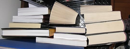 Now I better rush to read all those PDF's I've downloaded so far… before I go digital. But not completely, as the TBR dead-tree pile is still quite high! (I'm not showing the spines because 1) some of those are in Italian 2) some are non-fiction, which I don't review and 3) just in case I don't like a title – you know my policy of NOT reviewing what I didn't like )