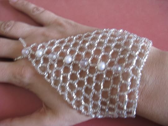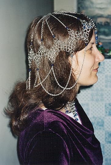I had in mind to do for myself twin handflowers for the medieval dinner, but I guess it's too late (although, if I really really wanted it, I could do both in a Sunday…). Besides it's supposed to be historical and there's no evidence of such jewelry in 12th century Europe. I guess it's more fantasy stuff, like the head piece I bought at the NY Renaissance Faire back in 2002…