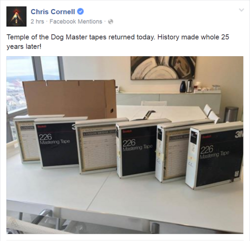 Chris Cornell: Temple of the Dog Master tapes returned today. History made whole 25 years later!Read the backstory here.
