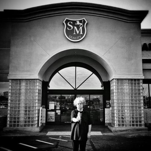 7am King Buzzo poses for a “1 photo and 1 photo only” portrait in front of his favorite S&M store, Mango Madness Kombucha in hand. Someplace in Northern California, Photo By O. #kingbuzzo #melvins