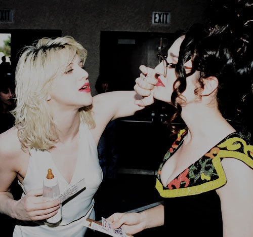 Courtney Love fixing VJ Kennedy’s make-up at...
