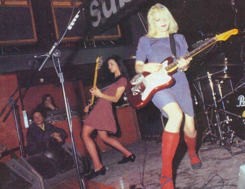 Original scarce early 1990’s B&W photograph, a vintage print of L7 at Seattle’s Space Needle, taken by legendary Pacific Northwest photographer Charles Peterson