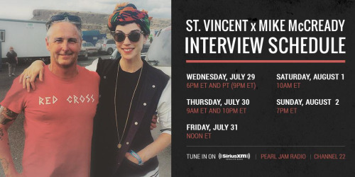 St. Vincent x Mike McCready SiriusXM Pearl Jam Radio interview schedule
