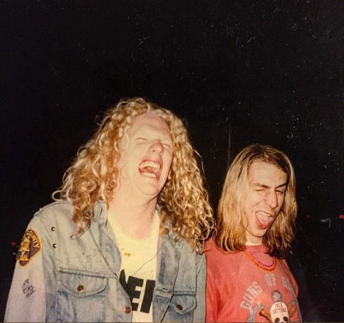Mudhoneyfrontman Mark Arm and then-manager Bob Whittaker on the road in the late ‘80s. #tbt
