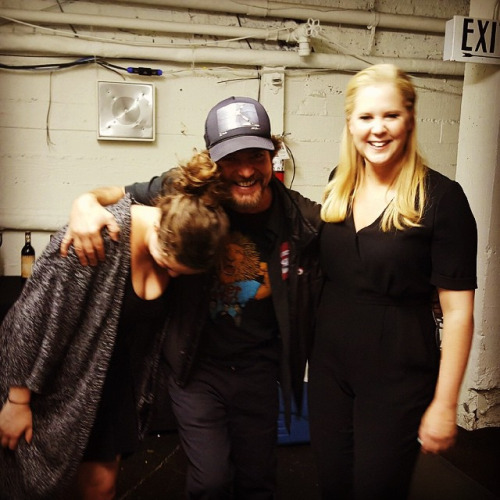 Amy Schumer and her road manager with Eddie Vedder, at the Trainwreck Comedy Tour stop in Seattle last night.