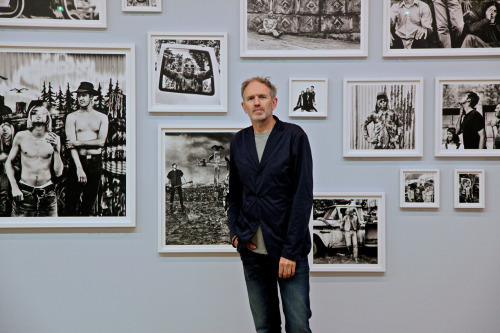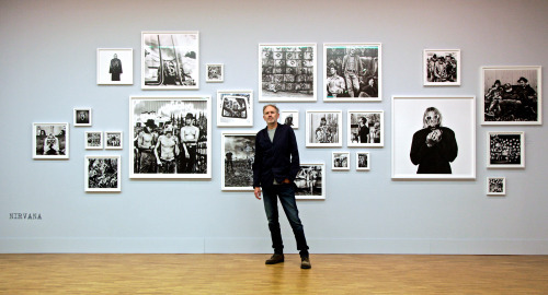 Photographer Anton Corbijn poses in front of the Nirvana wall of...