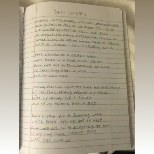 Handwritten lyrics to a new Chris Cornell song,“Dead Wishes,” as teased at yesterday’s Apple Music announcement.