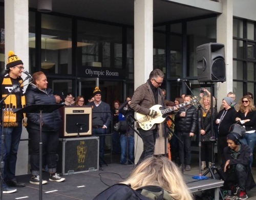 Pearl Jam’s Mike McCready plays “Eruption” at today’s groundbreaking ceremony for the new KEXP headquarters in Seattle Center. (Photo: Sarah Rathbone)