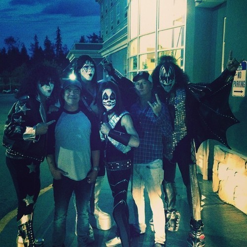Alice in Chains’ Mike Inez and Jerry Cantrellhang with Kiss cover band Destroyer in Prince George, British Columbia.