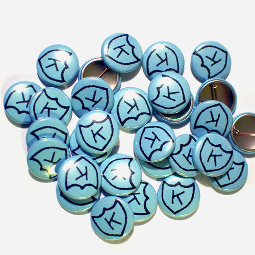 K interns Mike and James helped me make more K buttons last night, in Calvin's favorite color, pink! Check them out, along with all our pin-backs the K Mail Order Department! Deck out that backpack before class starts in September!